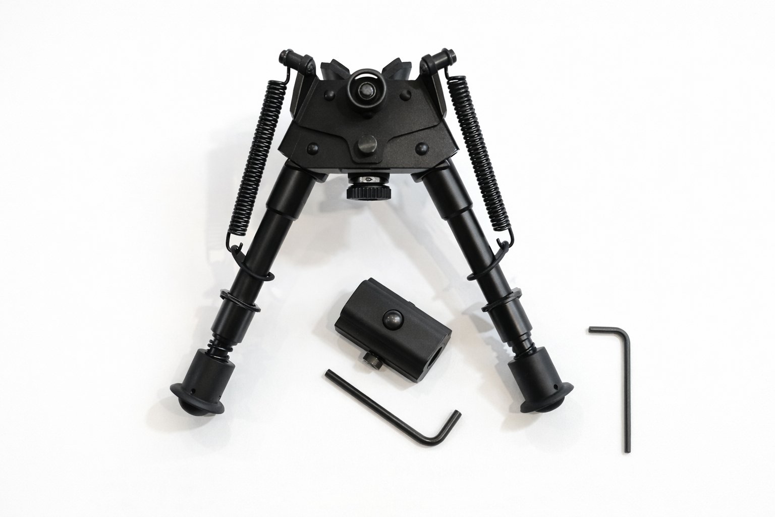 Se monta a pernos giratorios o riel Picatinny con adaptador de barra Picatinny incluido. El adaptador de perno se puede utilizar sin bípode para opciones de montaje adicionales