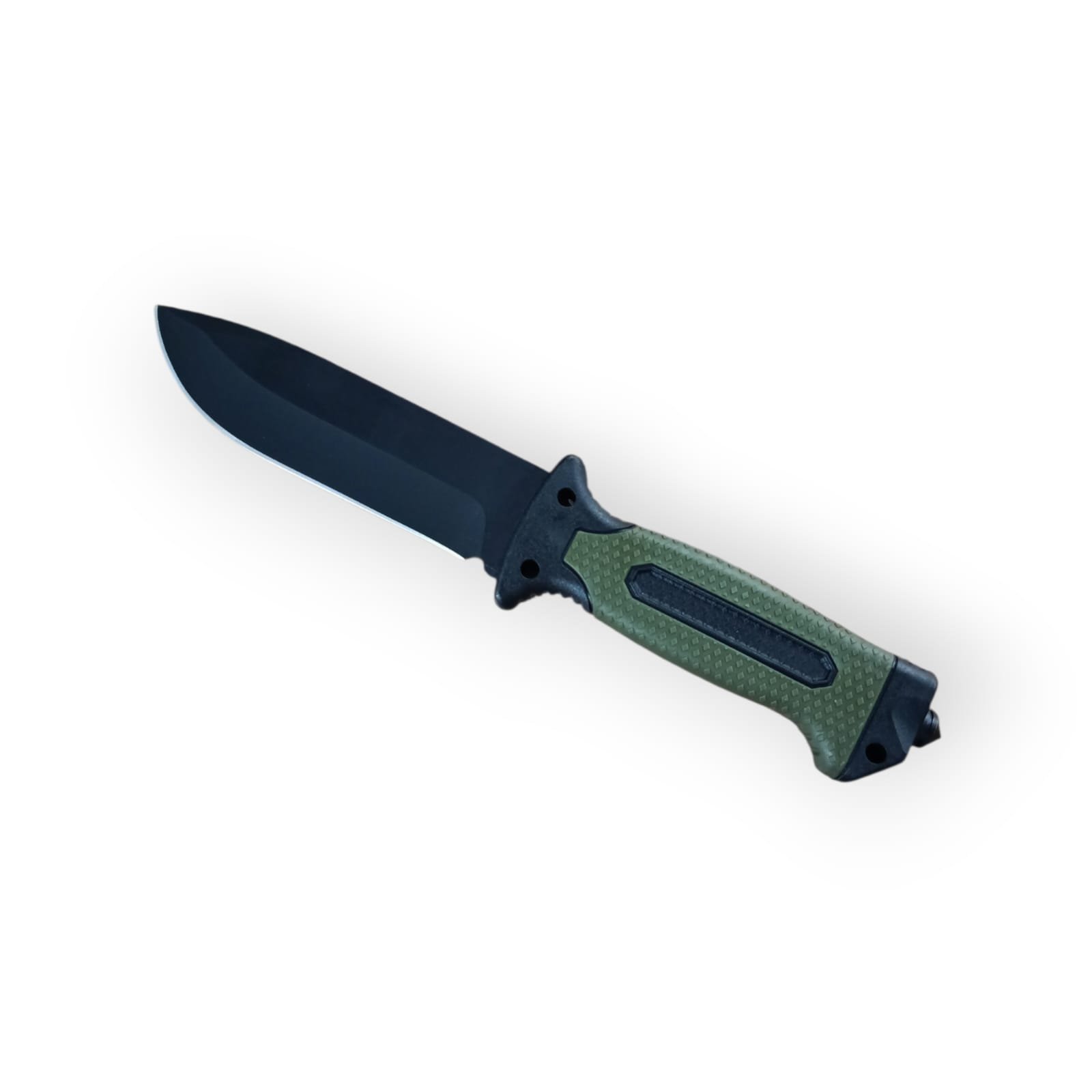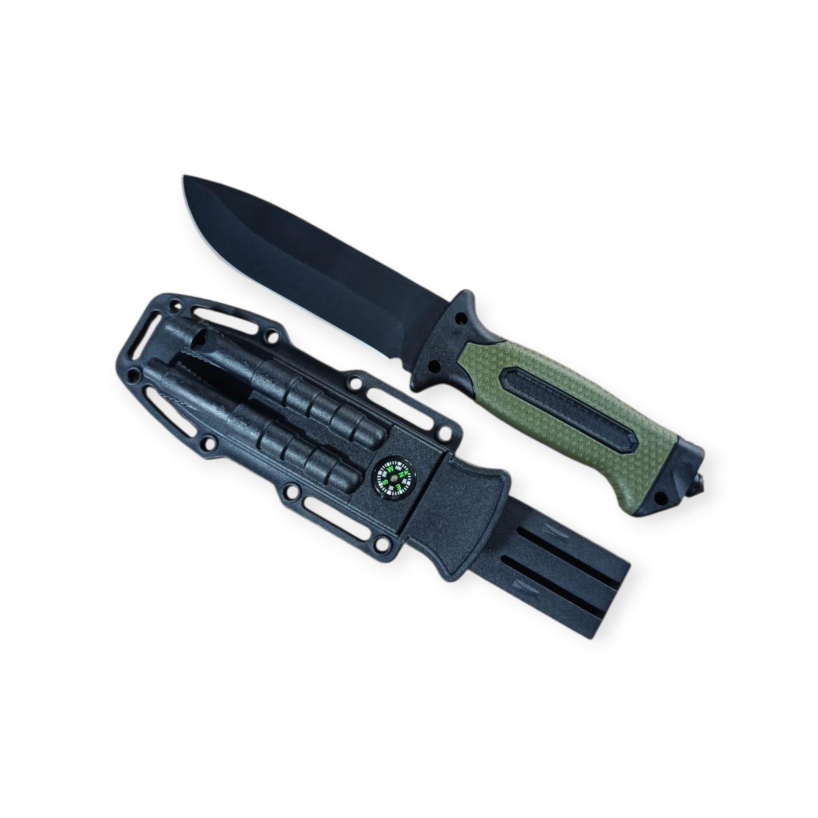 Cuchillo/Puñal Con Rompevidrio Cacha de pasta Verde Estuche en Polomiero con brujula