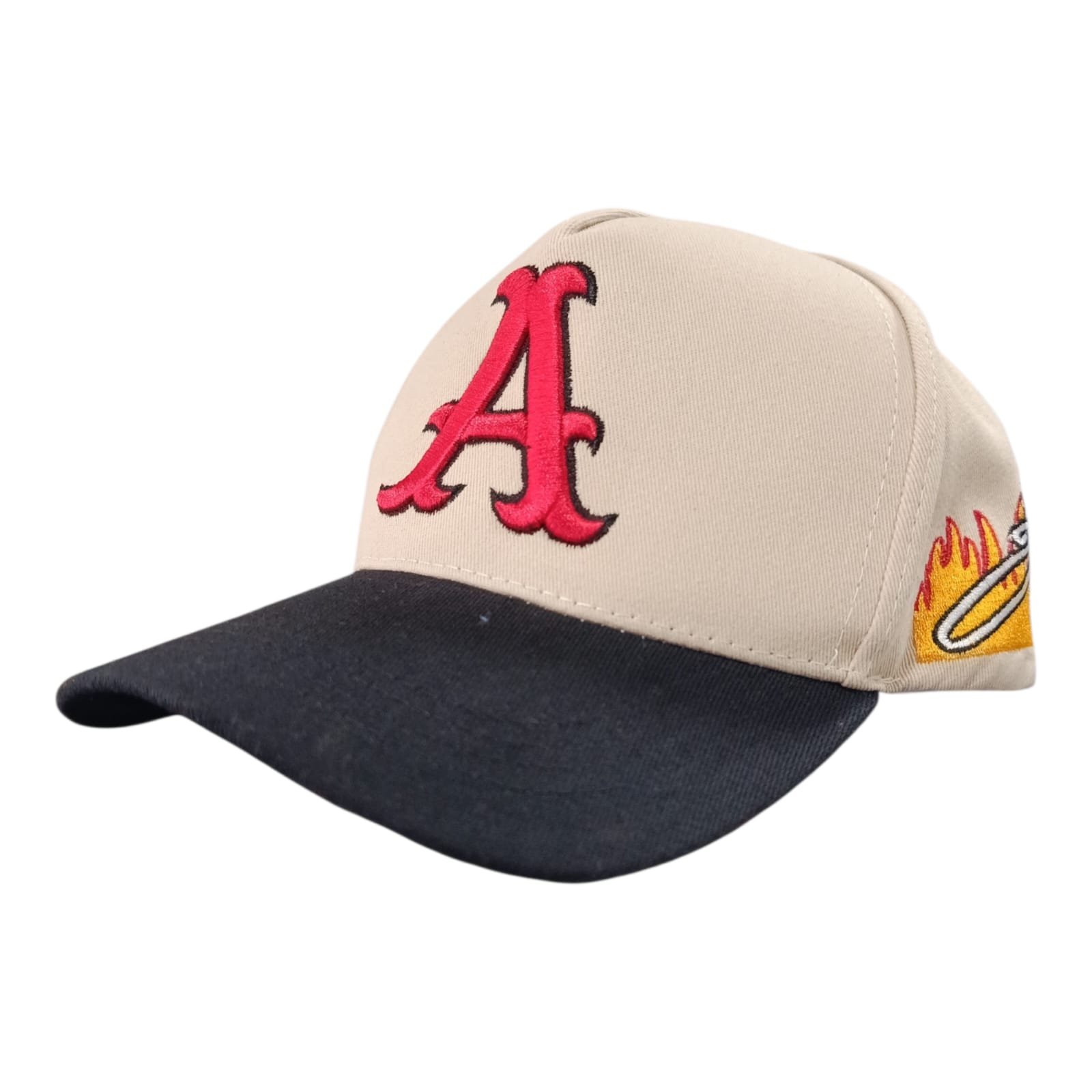 GORRA BEIGE/NEGRO LETRA A ROJA