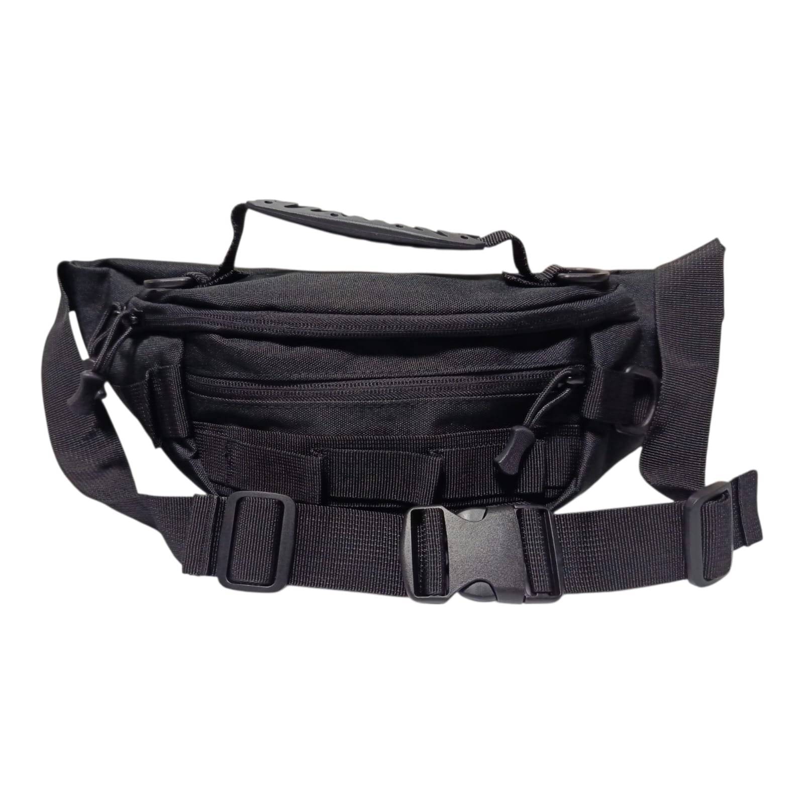 Riñonera de Lona, con 3 compartimentos, agarre de mano, y correa ajustable, buena capacidad para llevar todos tus articulos personales, estaras mas comodo, y todo a la mano.