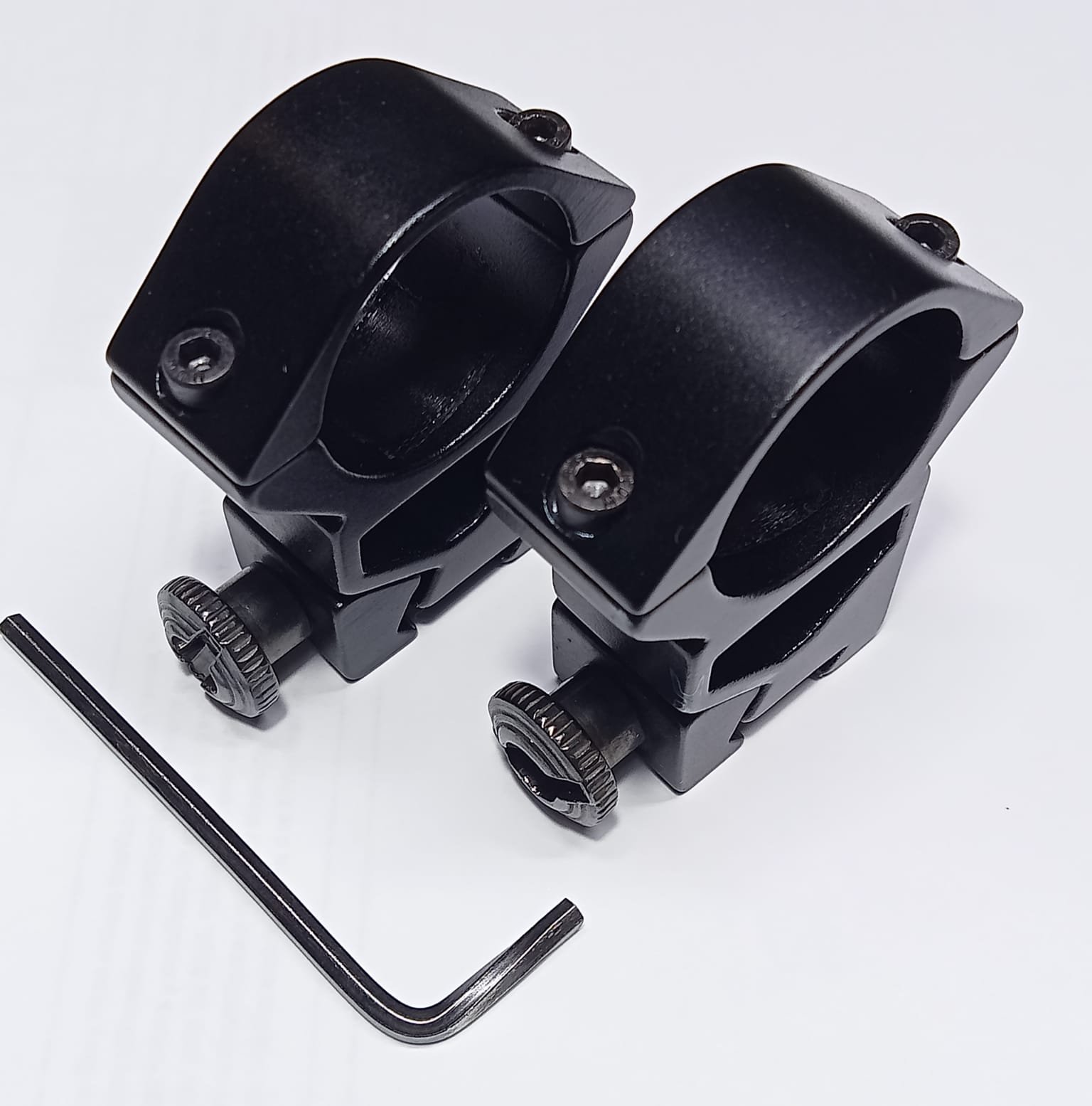 SOPORTE/BASE/ANILLAS DE MONTAJE PARA MIRA TELESCÓPICA RIEL 11 mm, alta 20mm y orificio de 25,4mm cantidad