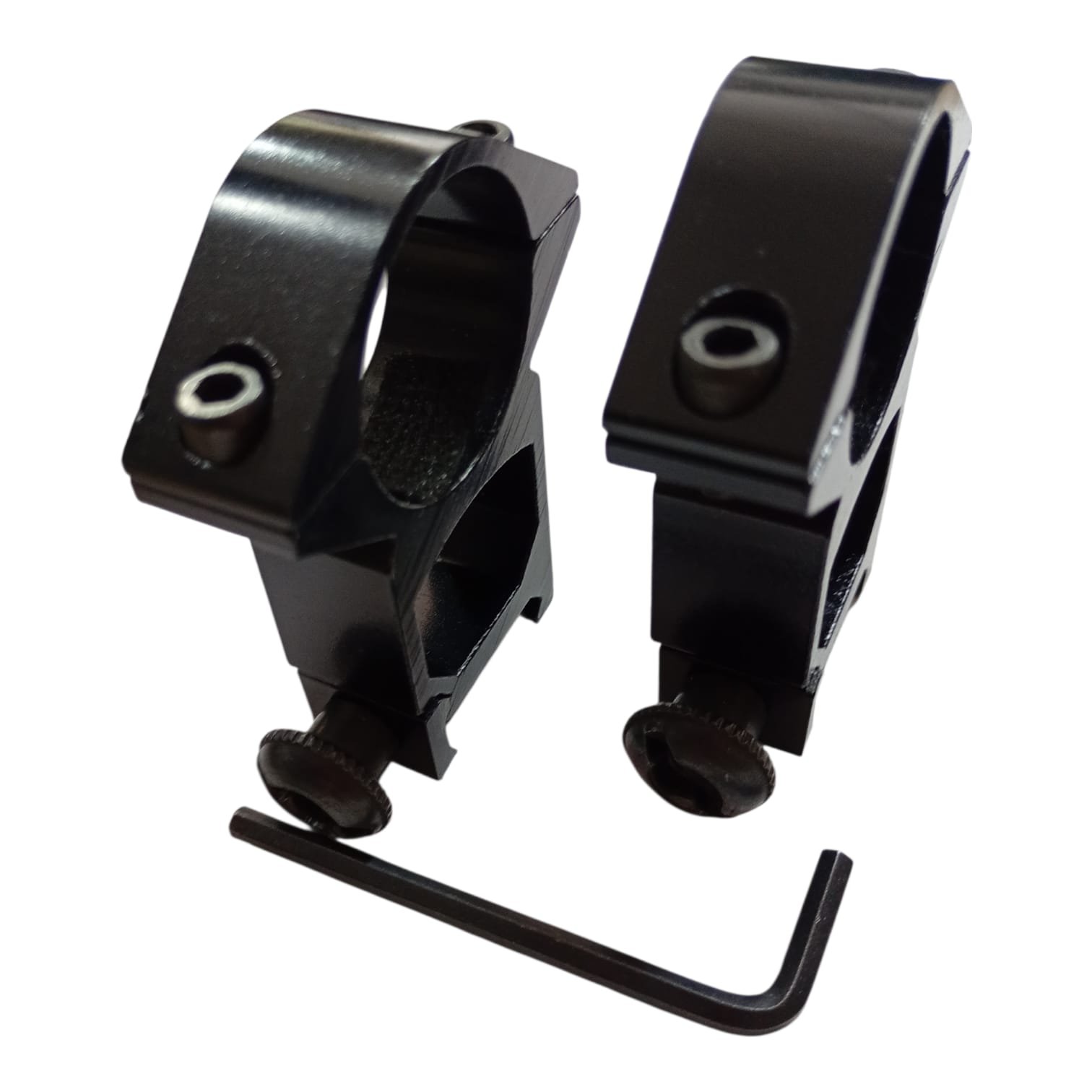 SOPORTE/BASE/ANILLAS DE MONTAJE PARA MIRA TELESCÓPICA RIEL 23 mm, alta 20mm y orificio de 25,4mm cantidad